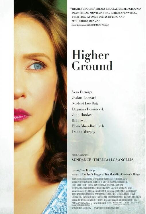 剧情片更高境界讲述了:在科瑞妮(维拉·法米加 Vera Farmiga 饰)还小的时候,对周遭的一切充满了好奇,遭遇许多成长的困惑,并且接触了宗教。刚刚成年的她很快遇上爱情,并且匆匆忙忙怀了孕,懵懵懂懂进入婚姻,和一位摇滚乐手成婚,成了一个家庭主妇,也放弃了写作梦想和宗教信仰。婚后的生活并不似科瑞妮期待一样好过,她甚至还得带着嗷嗷待哺的小孩跟着丈夫和一帮音乐朋友参加巡演,经常感到被忽略的失落。巡演途中,一场车祸发生了,一家三口费尽周折幸免于难,令科瑞妮再度产生信教的倾向。开始的一切似乎很快乐,但是经历教义约束、好友脑癌、外遇萌芽,科瑞妮的信仰始终在动摇……影片据卡洛琳·布里格斯的自传体小说《黑暗世界》改编