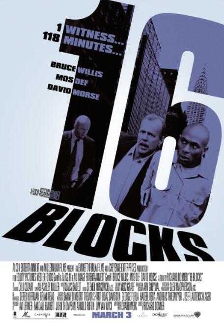 动作片勇闯16街区讲述了:纽约平淡的一天,临近退休的老警探杰克•莫斯利(布鲁斯•威利斯 Bruce Willis 饰)却接到了一个吃力不讨好的任务:穿行16片街区,护送一名犯人上法庭作证。这本该是件极其轻松的事,从警局到法庭的车程只有15分钟,唯一的麻烦看上去也只是罪犯艾迪(茅斯•达夫 Mos Def 饰)滔滔不绝的废话而已。然而事实却远不止于此,一次针对艾迪的暗杀行动让杰克发现了幕后的真相:所谓的上庭作证不过是个幌子,真实的情况是以警局同僚、老朋友弗兰克(大卫•摩斯 David Morse饰)为首的一批腐败警察,借杰克护送艾迪的机会铲除污点证人。经历内心的挣扎后,杰克为了寻求心中的正义保护了艾迪,却成了纽约警局的众矢之的。16片街区的距离,从来也不曾如此漫长过…