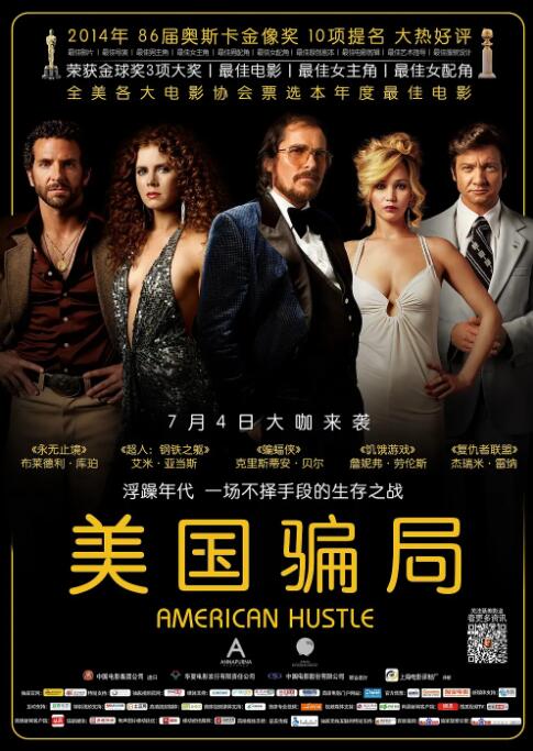 剧情片美国骗局讲述了: 一次偶然中,埃文(克里斯蒂安·贝尔 Christian Bale 饰)遇见了性感美艳的脱衣舞女西德尼(艾米·亚当斯 Amy Adams 饰),趣味相投的两人一见钟情,很快就打得火热。没想到,埃文是一个职业骗子,在他的鼓动和“爱情的力量”影响之下,西德尼毅然入伙,两人联手合作,将“事业”经营的有声有色。然而,常在河边走哪有不湿鞋,警方早已经盯上了行事作风颇为高调的埃文和西德尼,终于,在一次精密筹划的行动中将两人捉拿归案。经不住FBI探员里奇(布莱德利·库珀 Bradley Cooper 饰)的游说和诱惑,埃文和西德尼决定与其合作,“戴罪立功”。尽管拾起了“老本行”,但这次一次,埃文和西德尼显然站在了正义的那一方,因为他们的对手是那些贪赃枉法的腐败官员。